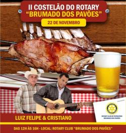 Com início marcado para as 12 horas, o IIº Costelão será abrilhantado pela dupla ‘Luiz Felipe & Cristiano’. Os preparativos estão todos concluídos faltando apenas pequenos detalhes. Os ingressos podem ser adquiridos com os companheiros e damas do Rotary Brumado dos Pavões. Adquira o quanto antes os seus, pois o número é limitado e a procura que já é intensa deve aumentar nesta semana que antecede o evento.